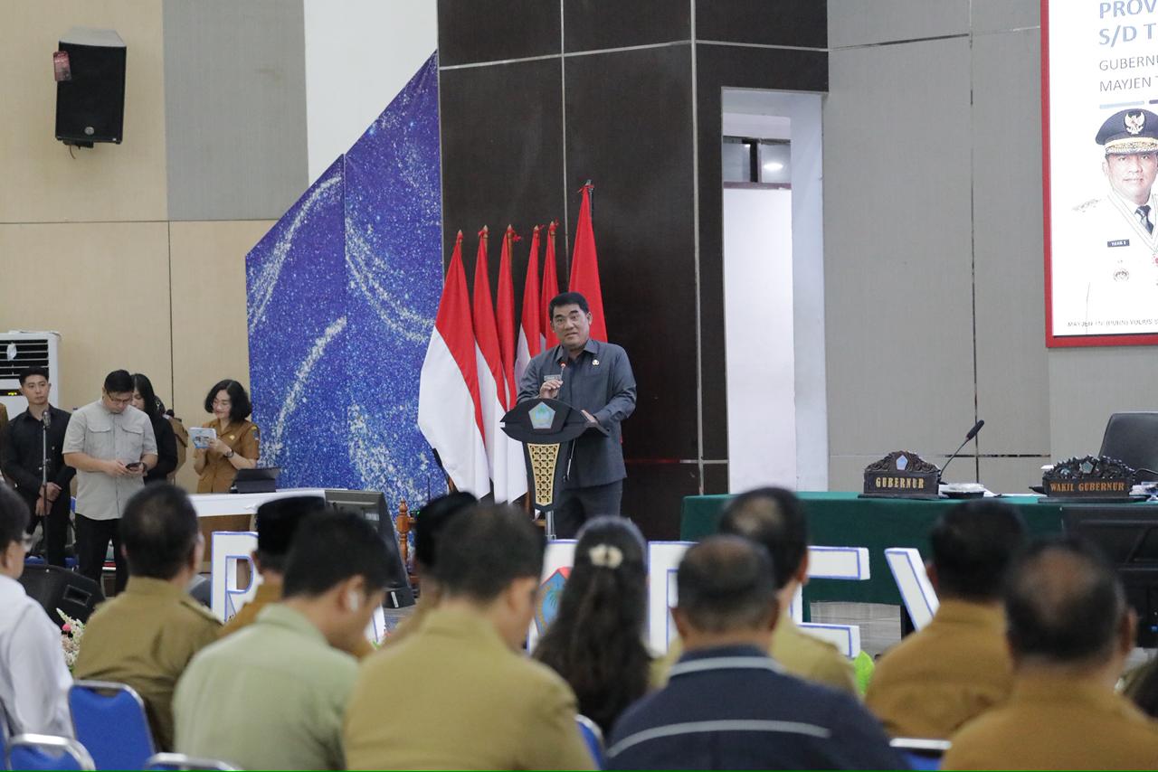 Rakorev dibuka Gubernur Sulawesi Utara Mayjen TNI (Purn) Yulius Selvanus, S.E., yang menekankan pentingnya keselarasan pembangunan daerah.