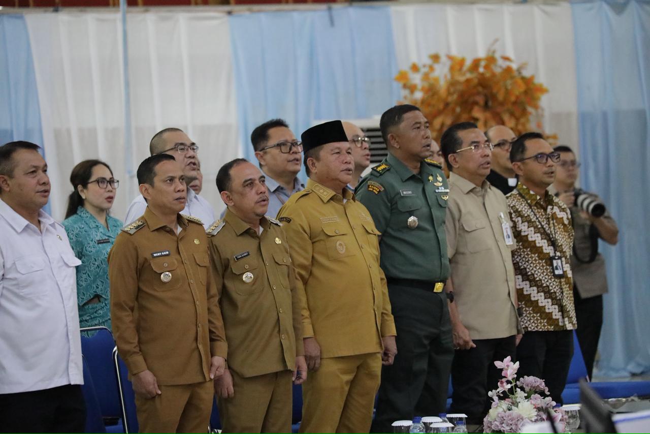 Rakorev dibuka Gubernur Sulawesi Utara Mayjen TNI (Purn) Yulius Selvanus, S.E., yang menekankan pentingnya keselarasan pembangunan daerah.