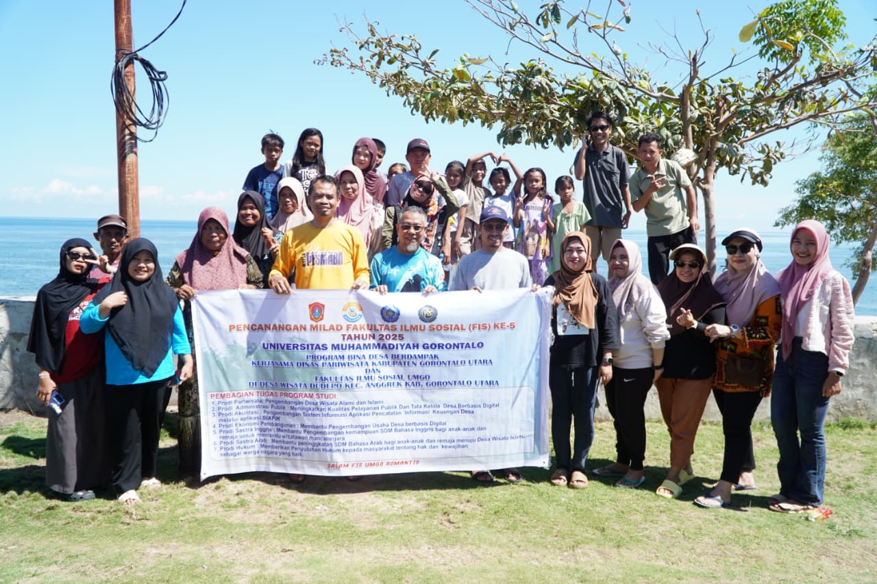 KAMPUS (DIGIMEDIA.ID) – Fakultas Ilmu Sosial (FIS) Universitas Muhammadiyah Gorontalo (UMGO) mencanangkan Milad ke-5 yang dirangkaikan dengan Program Bina Desa Berdampak di Desa Wisata Dudepo, Kecamatan Anggrek, Kabupaten Gorontalo Utara, Sabtu (2/11/2025).