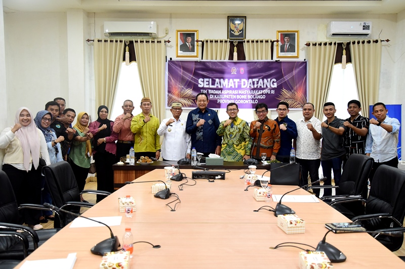 Foto bersama usai pertemuan dengan BAM DPR RI di Kantor Bupati Bone Bolango, Kamis (27/11/2025). (Foto : Haris)