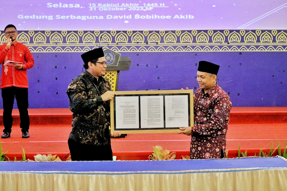 Izin pembukaan prodi tersebut diserahkan oleh Kepala LLDIKTI Gosuluteng, Munawir Sadzali Razak kepada Rektor UMGO, Prof. Abd. Kadim Masaong, di Gedung Indoor David Bobihoe Akib, Selasa (31/10/2023).