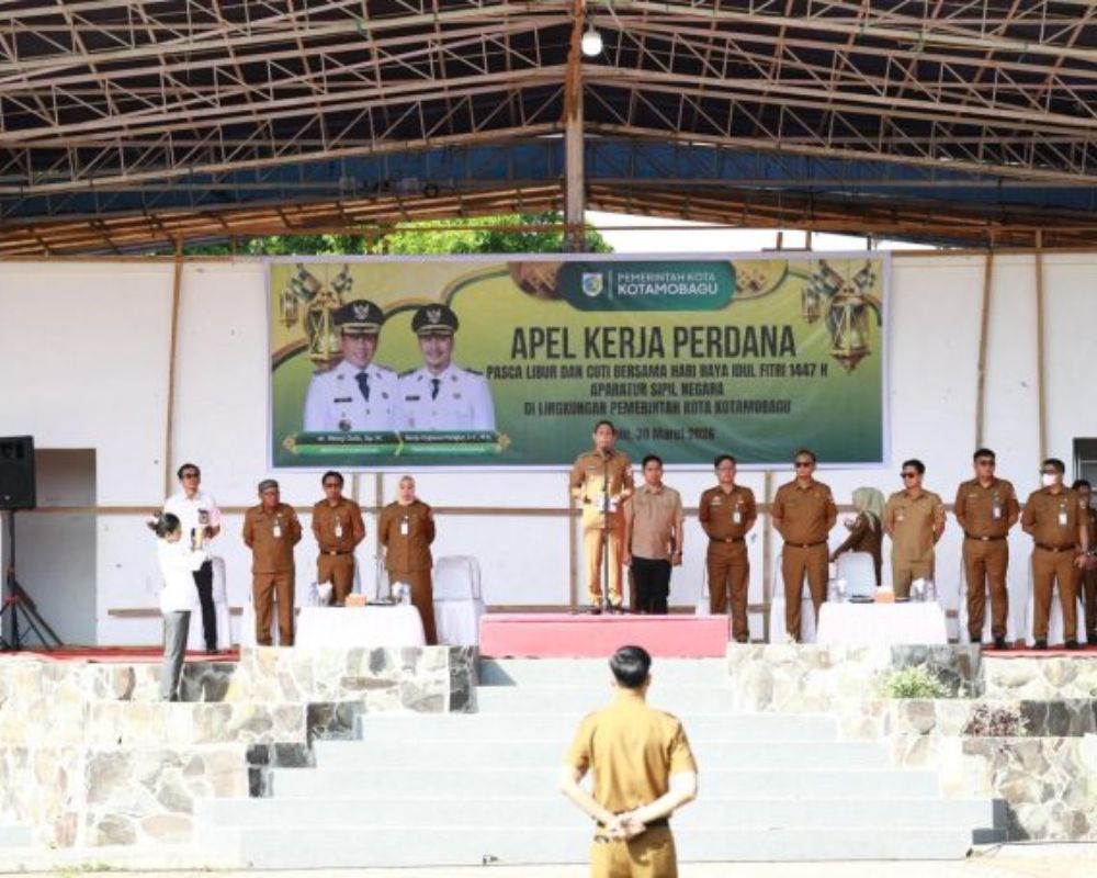DIGIMEDIA.ID – Wali Kota Kotamobagu, dr. Weny Gaib, Sp.M., memimpin apel kerja perdana usai libur dan cuti bersama Nyepi serta Idulfitri 1447 Hijriah, Senin (30/3/2026).