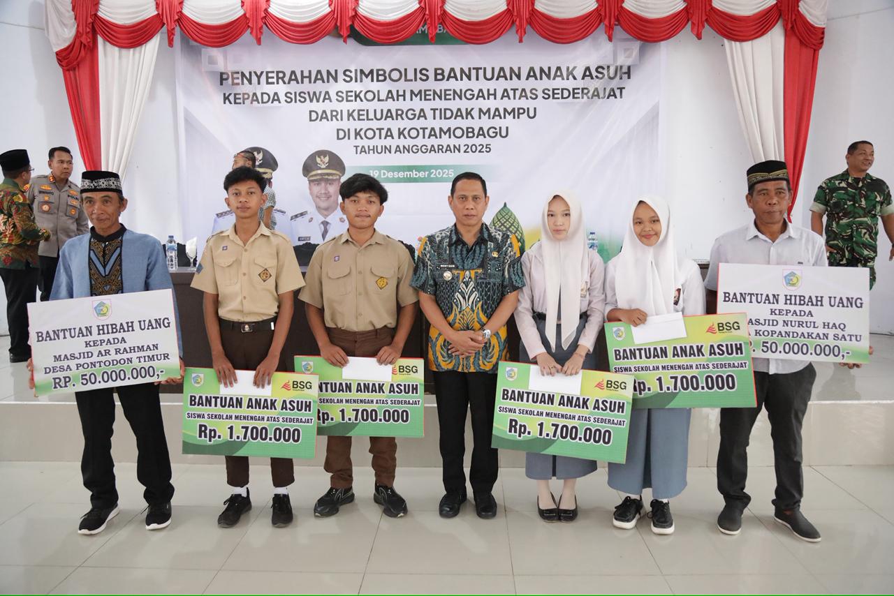 Pemerintah Kota Kotamobagu menyerahkan bantuan anak asuh kepada siswa siswi sebagai upaya menjamin kesempatan memperoleh pendidikan berkualitas bagi masyarakat daerah.